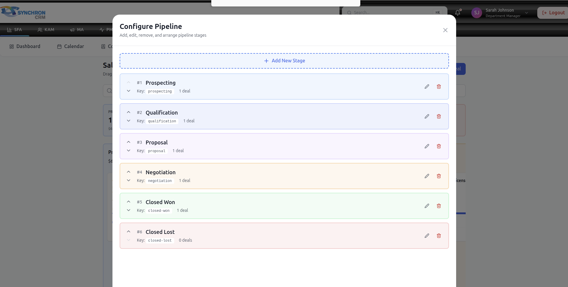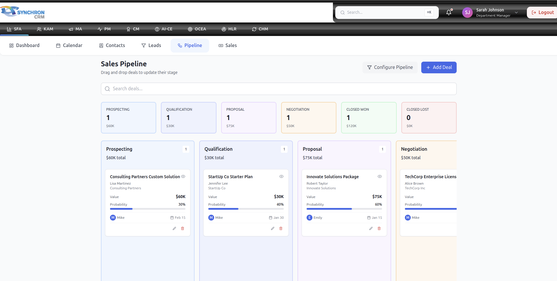 The Pipeline module represents active sales opportunities that have been qualified and are progressing toward closure.