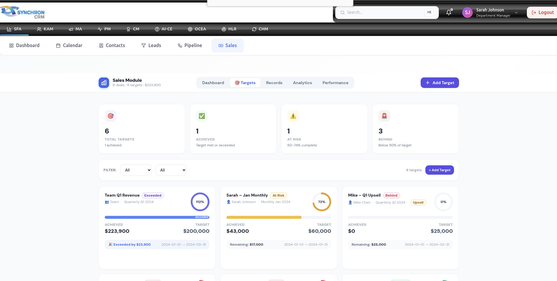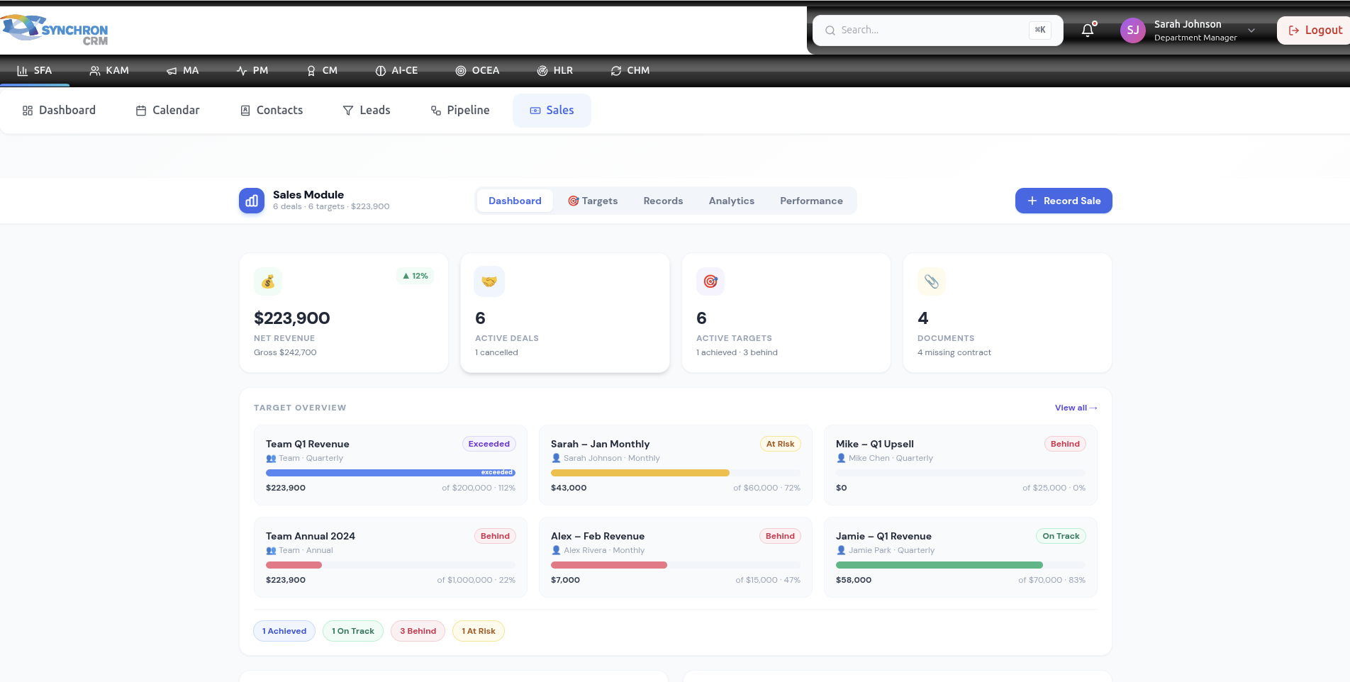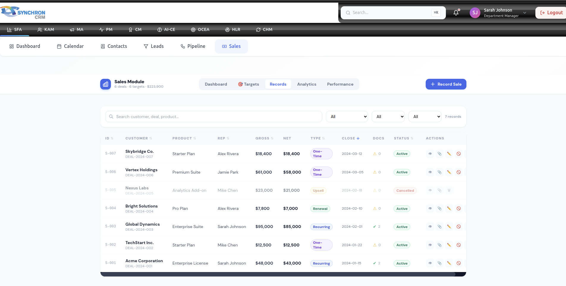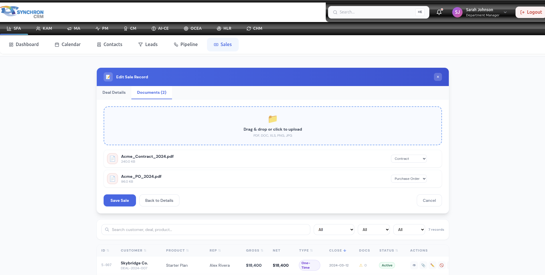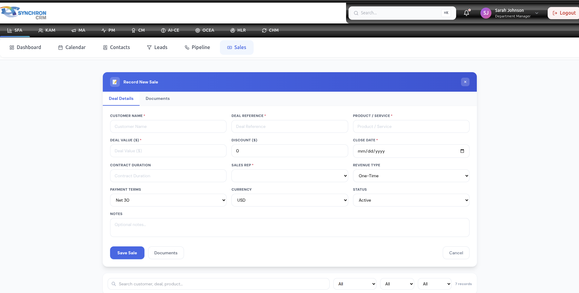 The Sales Module is where finalized deals are officially recorded and tracked.