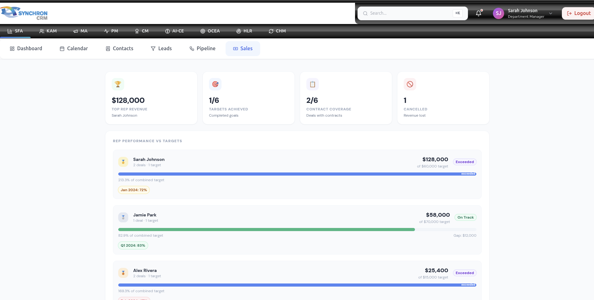 - Sales rep performance ranking